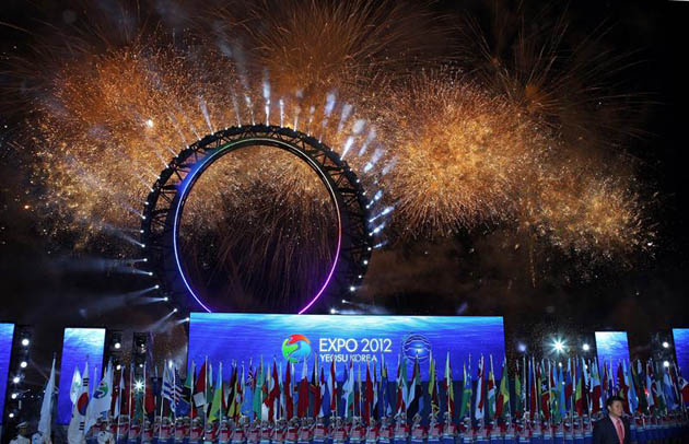 La Exposición Internacional de Yeosu 2012, que toma el testigo de la celebrada en Zaragoza (España) en 2008, abre con el lema «Por unos océanos y costas vivas» y la aspiración de lograr 8 millones de visitantes en tres meses.