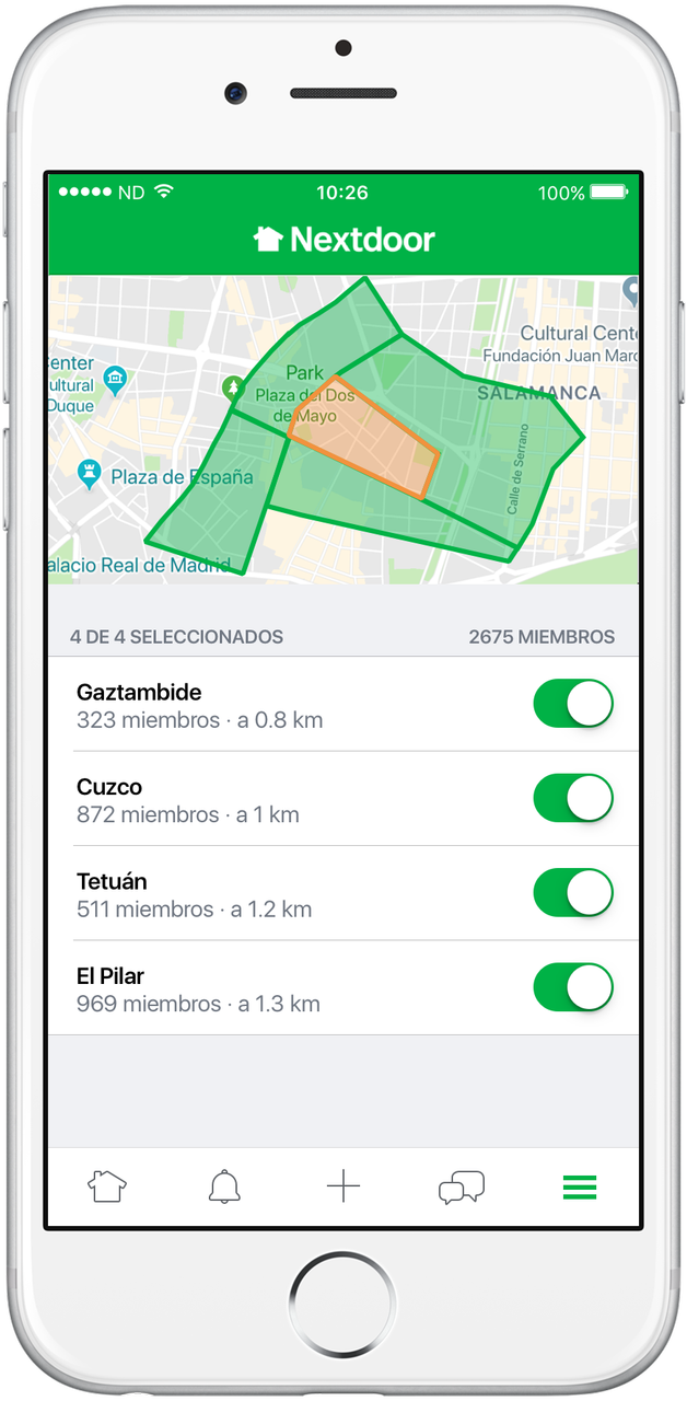 Una comunidad segura para conectarse solo con personas locales reales: En Nextdoor, los vecinos crean comunidades en línea privadas y seguras dedicadas a su vecindario, donde pueden hacer preguntas, conocerse entre ellos e intercambiar consejos y recomendaciones locales. Por ejemplo, los vecinos en España ya están utilizando Nextdoor para obtener recomendaciones de confianza para niñeras y operarios, obtener ayuda para encontrar un perro perdido y organizar aperitivos en el barrio para conocer a nuevos vecinos.
