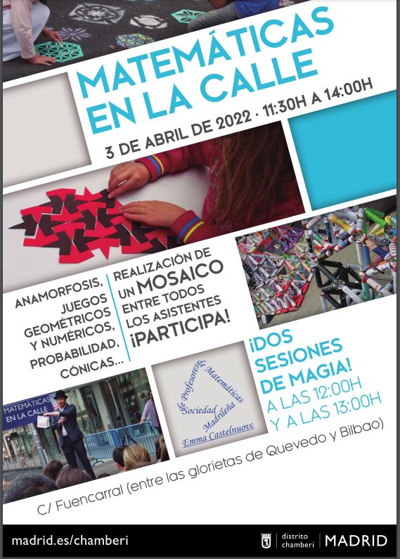El evento, que va a tener lugar en la madrileña calle Fuencarral (entre las glorietas de Bilbao y Quevedo), ha sido organizado por un grupo de profesores, miembros de la Sociedad Madrileña de Profesores de Matemáticas «Emma Castelnuovo».