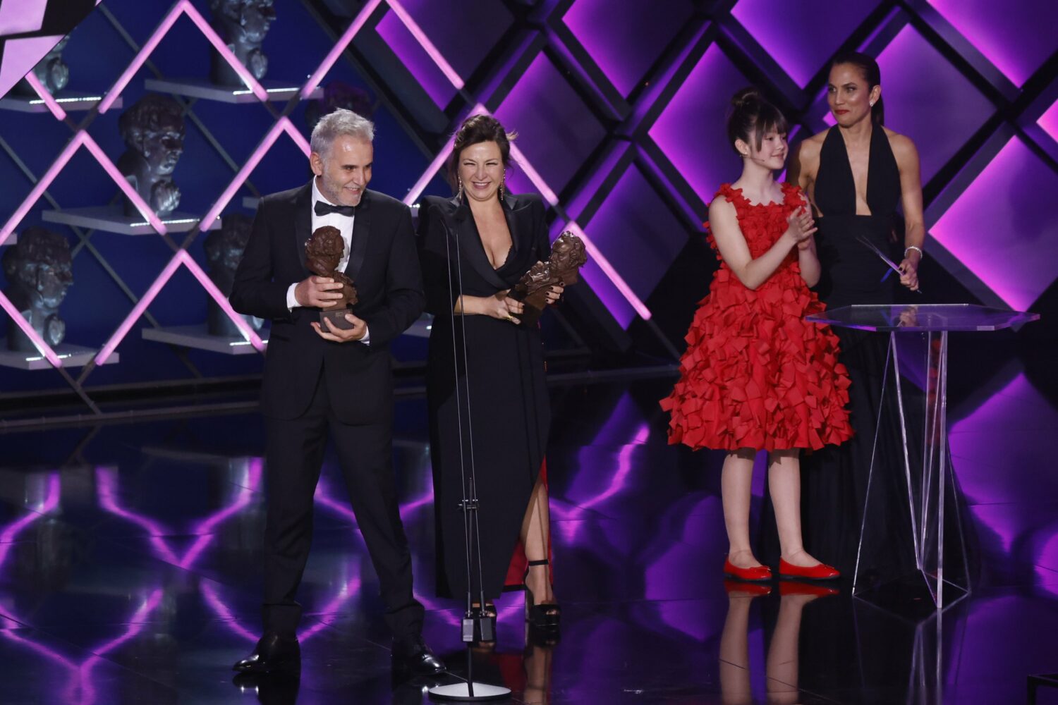Una gala cargada de emoción desde los primeros minutos con la familia de Carlos Saura en el escenario. Su última esposa Eulalia Ramón y los hijos del cineasta Antonio y Anna recogieron el Goya de Honor que esta noche debía recoger el director fallecido este viernes a los 91 años.