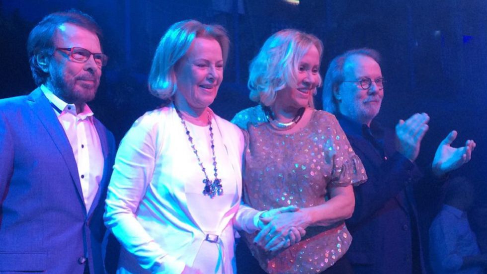 Agnetha Fältskog, Anni-Frid Lyngstad, Benny Andersson y Björn Ulvaeus se subieron anoche al escenario del «Tyrol», en el parque de atracciones Gröna Lund para hacerse una foto de grupo, según recogen hoy medios suecos.
